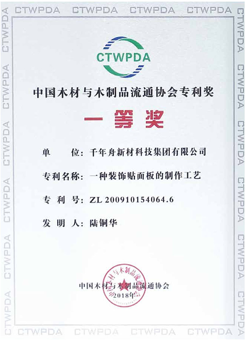 中国木材与木制品流通协会专利奖一等奖
